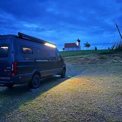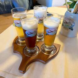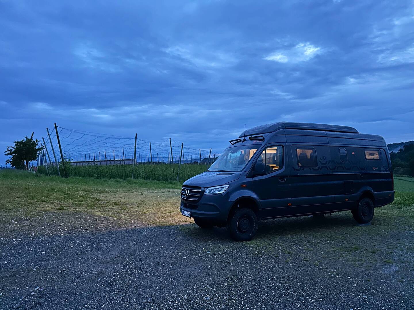 Nachdem Antje nett gefragt hatte, durften wir auf dem Schotterplatz beim Brauhaus übernachten. Besser geht es doch nicht. Bier verkosten, lecker essen und direkt bettschwer ins WoMo fallen.