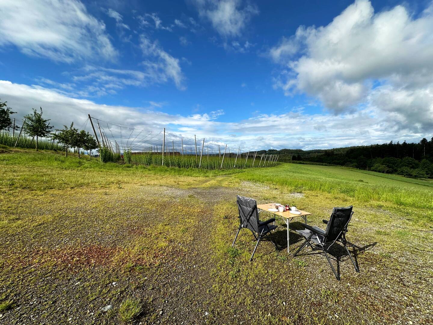 Es hat geregnet in der Nacht, wie vorhergesagt. Doch jetzt zum Frühstück scheint die Sonne. Wir sitzen hier mit Blick auf die Hopfenfelder und ich denke, wenn das so weitergeht, habe ich keineもっと詳しく