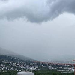 Der eine oder andere Regenschauer hat sich auch blicken lassen und gerade jetzt (18.46 Uhr und stockfinstere Nacht) Gewitter in der Ferne.