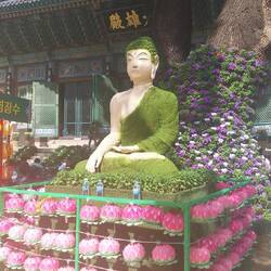 Switched to a hostel in Gangnam and visited the Coex Mall, the Starfiel library (wow) and a temple. For dinner we had Dak Galbi, chicken with cheese and watched a Watershow and the nightly skyline