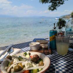 Nächster Stop in Mazedonien ist der Ohrid See. Der hat echt kristallklares Wasser und ist riesengroß. Wir haben sogar einen lokalen Schwimmwettbewerb beobachtet.