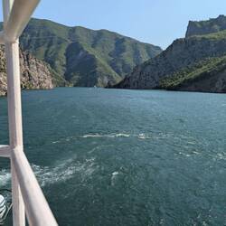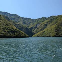 Auf den Weg in die Berge gibt es für uns um den See Komani entlang, der fast wie ein Fluss sich durch die Berge schlängelt. Die ganze Reise dauerte 10 h, hatte aber viele gute Aussichten unterwegs.