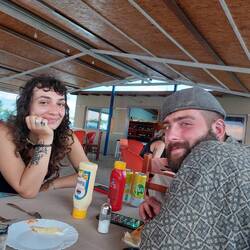 Au bord du Danube, un ptit couple qui nous a offert des fruits de leur jardin