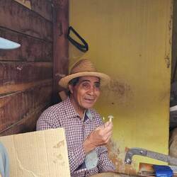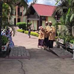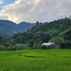 Die traditionelle Reissuppe zum Frühstück war wieder sehr lecker, ich schnitt mir noch ein Omelett hinein.... mehr als lecker. Solcherweise gut gestärkt ging es mit dem Bus hoch in die Berge.Read more