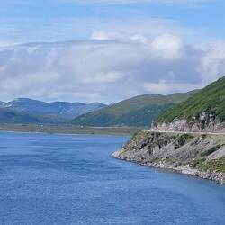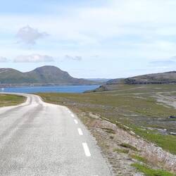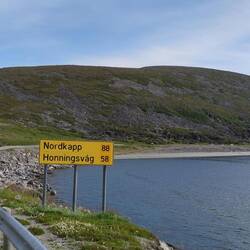 Morgens um 6 merkte ich, dass Axels Packesel bereits weg war und so machte ich mich auch parat, um auf die Nordkap-Insel zu gelangen. Um 7 gings dann los. Bei stimmigem Wetter gings der Küste entlang, in einen ersten nassen und recht dunklem Tunnel hinein, um nach 3km diesen kühlen Ort wieder zu entrinnen. Die Gegend ist einsam, nur der Verkehr und einzelne Häuser weisen auf die Zivilisation hin. Nach langen 75km war dann der berüchtigte 7km lange Seatunnel erreicht. Nochmals aus dem Notproviant verpflegt, Lichter an, Sonnenbrille verstaut und ab ging ins Loch. Zunächst 3km hinunter, es wurde immer kälter und vor allem die Hände spürten dies empfindlich. Der Verkehr hielt sich in Grenzen. Der nachfolgende 4km lange Aufstieg aus dem Tunnel mit 9℅ Steigung war dann doch sehr anstrengend. Mein Frontlicht war schon auf Orange, was nichts gutes bedeutete. Endlich kam das ersehnte Ende des Tunnels. Als Moll sein Frontlicht an der Powerbank laden wollte, war diese Leer.