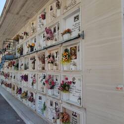 Also schnell Morgentoilette, alles einpacken und anziehen und im Frühstücksraum Saft trinken und ein Brioche essen. Dann gings los. Der Verkehr war den ganzen Tag über überschaubar. Auch in den Städten lief es problemlos. Nach 7km gabs dann ein Cappuccino mit Wasserflasche. So "gestärkt" gings in ebener Landschaft teils auf Radwegen, Nebenstrassen oder auch mal Hauptstrassen mit Seitenstreifen immer näher zum Sporen. In Bisceglie radelte Moll dann wieder einem netten Fischerhafen entlang. In selbiger Ortschaft gabs auch einen langen Radweg, der aber hier morgens von vielen Läufern genutzt wurde. Erstaunlich wie viele Leute hier joggen und nicht Radfahren. In Barletta radelte ich an einem riesigen Friedhof vorbei, der mit hohen Mauern abgeschottet war. Also ging Moll durch eines der vielen Pforten und war erstaunt, wie viele Menschen ihre letzte Ruhe in einer Wand fanden. Dass müssen tausender gewesen sein.🕯