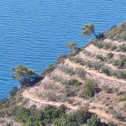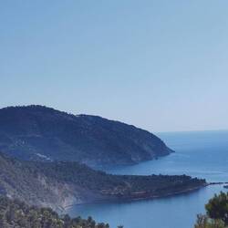 Was Moll vergessen hatte, dass die B6 immer mal wieder nicht asphaltiert ist. Einmal war der Track steil abwärts aber nicht für Moll und seinen Kumpan mit all dem Geröll nicht fahrbar und daher wurde fluchend 😫 das Rad geschoben. Aber besser so, als ein Stürz in dieser einsamen Gegend. Ein andermal führte die B6 durch einen Pinienwald mit einem Sandtrack, sodass auch da Moll schieben musste. Mehrheitlich gings aber auf glattem Belag dem Radweg entlang 😁