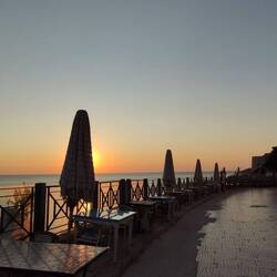 Schliesslich bin ich in Durres gesund angekommen, habe ein Ticket für die Fähre nach Bari gekauft, Lunch gegessen, einen Sonnenschirm samt 2 Liegen gemietet, gebadet und warte bis 19:00, da ich dann im Büro einchecken kann, wo ich das Ticket gekauft hatte 🤔.