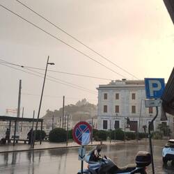 Als ich heute wie in den letzten Tagen üblich ohne Frühstück losgeradelt bin, spürte ich schon nach wenigen Metern, etwas Nasses auf meiner Haut. Ein Blick in meine Fahrtrichtung zeigten dunkle Wolken. Schnell die Regenjacke montieren und wollte schon losfahren, da regnete es bereits wie aus Kübeln. Papa Moll sofort unter einen Unterstand und wartete diesen extremen Regenguss ab. Nach einer Viertelstunde war der Spuck vorbei und Moll konnte endlich bei pflotschnassen Straßen losfahren. Um die Hauptachsen von Ancona zu meiden, hatte Komoot für Papa Moll eine Umfahrung ausgedacht. Gleich mal senkrecht die Strasse hoch. Nur mit dem 1sten Gang und aus dem Sattel schwingend konnte ich diese Steigung bewältigen. Dafür war der Körper jetzt aber sowas auf Betriebstemperatur.