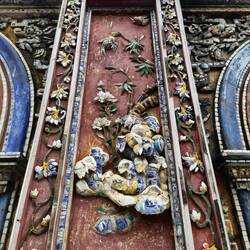Immediately the weight of authority and awe was visible from the crossing of the bridge leading to the entrance of the citadel. The Citadel was a place of ruling and residence for the royal families and their servants (read concubines and eunuchs and military personnel) over centuries. The citadel comprised of several layers, each consecutive deeper layer allowing access only to the higher ranking servants. Unfortunately most of the grounds were destroyed by the bombings during the endless war and together with that most of the original buildings and features. Remaining walls still show the scrapes made by the tanks when the gate was stormed, the bullet holes from the heavy artillery. Except..... the library remained intact. What an incredible legacy to have. The patterns of birds, dragons, turtles all created with the best quality porcelain pieces shipped in from neighboring countries. The beautiful wood work and carved stone pieces all carrying unique significance including prosperity, strength, peace.