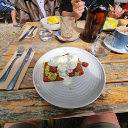 Ein kleines Café etwas ausserhalb der Innenstadt, mit Sitzplätzen innen und außen im grünen mit sehr interessantem Frühstück Angebot 😋