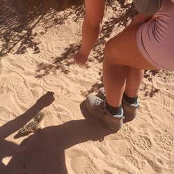 Our camping area for the next two nights. Has to take another long rough dirt road to get to it. Even had to do a small water crossing in jeep. Second bridge had a sign fo not pass if flooded, luckilyMeer informatie