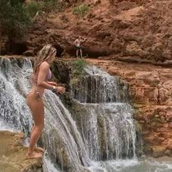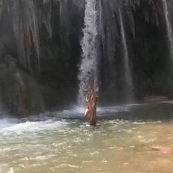 First hike of the day was to 50 foot falls. Was back towards the village, not to far maybe a mile or so. Did take some work to find the way down to bottom of it though. Was a kind of covered trail andMeer informatie