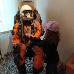 Niclas als Pilot. Selina wartet auf den Abflug.