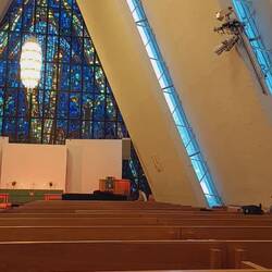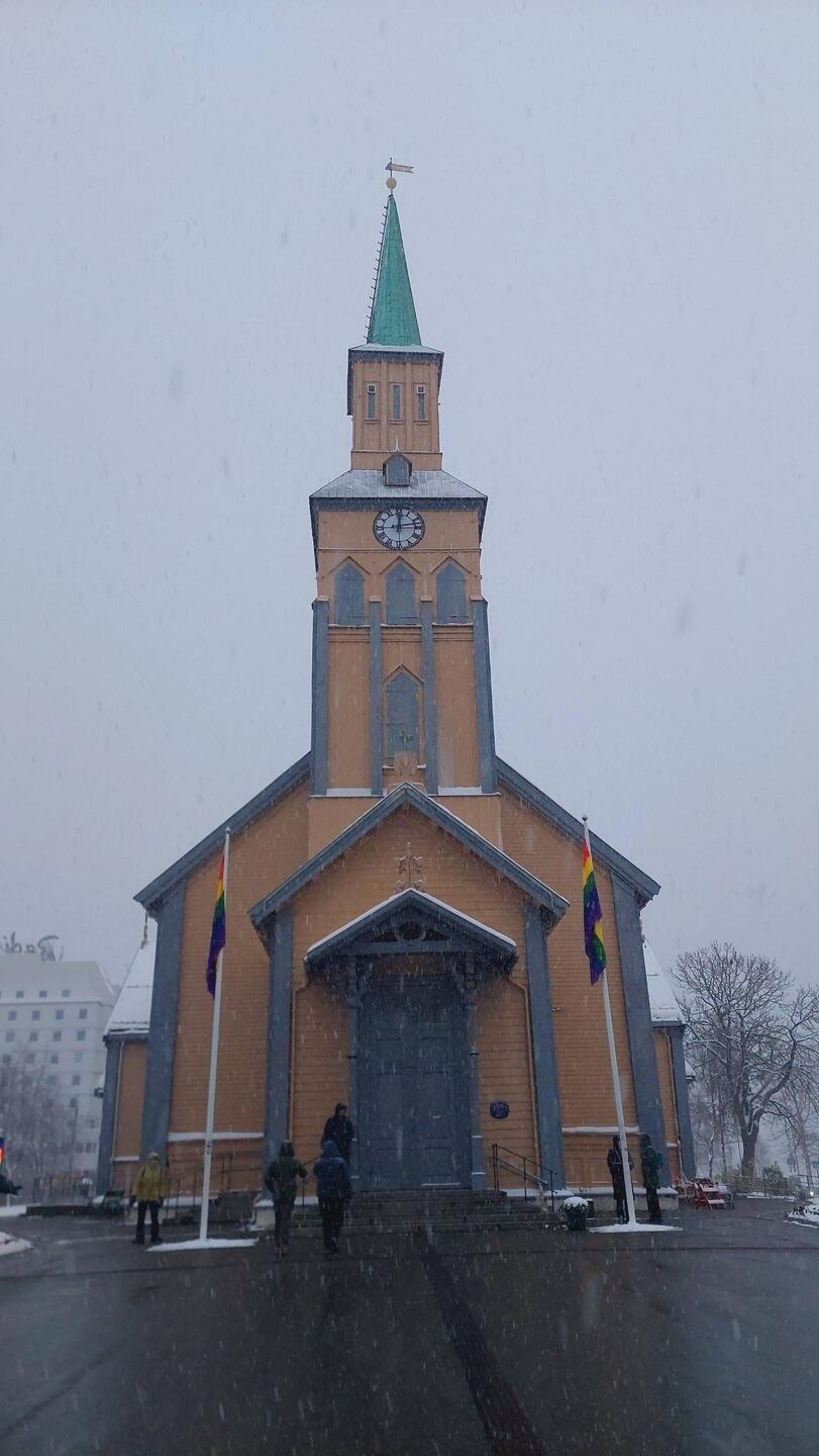 Wir haben wieder ruhig gefrühstückt und sind dann über die Brücke nach Tromsdalen gefahren, um die Eismeerkathedrale zu besuchen. Drinnen lief Klaviermusik und wir haben die Wärme genutzt, um einもっと詳しく