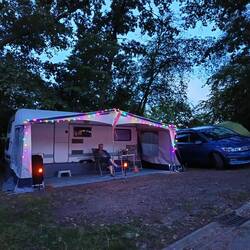 Der ganze Tag war einfach zauberhaft. Frühstück, Shoppingtour in Neustrelitz, Mittag, Schläfchen, Kaffee, Rummy und zum Abschluss gab es hier ein Musical "Zauberhaft" auf der Campingplatz-Bühne.Leggi altro
