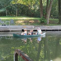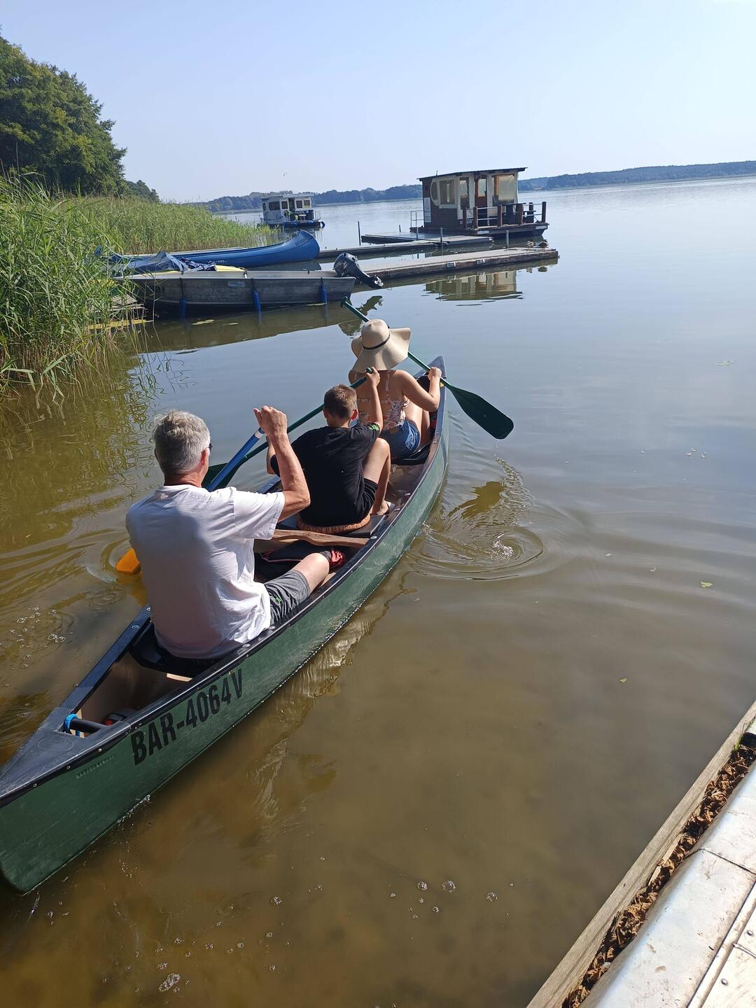 Die Sonne scheint noch nicht mit 32 angekündigten °C heiß vom Himmel. Also schnell frühstücken, denn heute fährt Opa Heini mit Annabell & Maximilian Kanu. Ab 10.30 Uhr glitten sie dahin mitLeggi altro