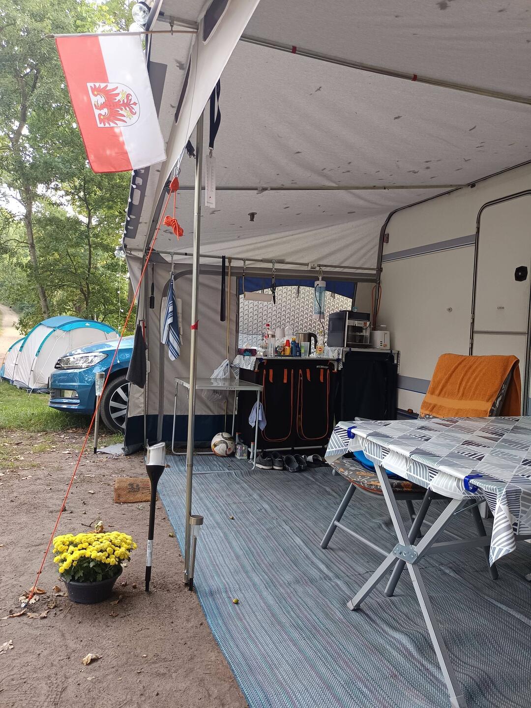 Unser "Baby" (Wohnwagen) ist gepackt und wir sind startklar. Gegen 13 Uhr fuhren wir Richtung Woblitzsee bei herrlichem Sonnenschein. Ankunft gegen 15.30 Uhr. Dann ruhiges Vorzelt-Aufbauen.