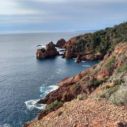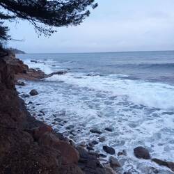 - la mer, les vagues, la vue sur le massif de l'Estérel le matin. Ballade sur le sentier du littoral puis sur le bord de mer à Saint Raphaël. On a vraiment de la chance : il pleutLæs mere