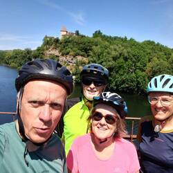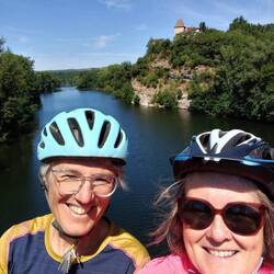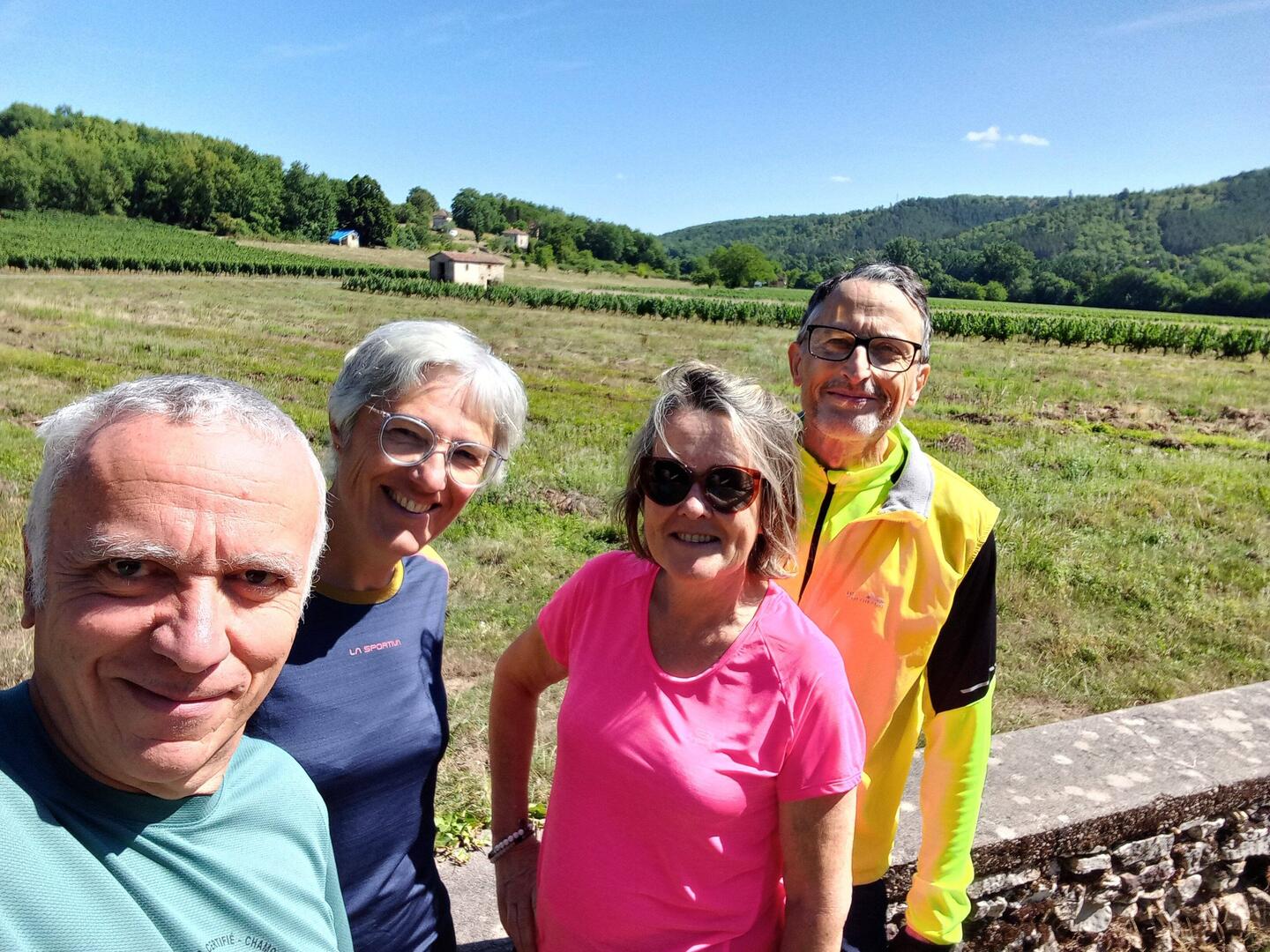 Visite de Puycelsis, arrêt à Cazals les pieds dans l'eau.