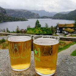 Schon während der Nacht zogen ordentliche Regenschauer über uns hinweg. Das Bild am Morgen war kein Stück besser. Alles grau in grau und völlig verregnet. Exakt so wie angesagt und so soll es die nächsten Tage weiter gehen. Wir passten eine kurze Regenpause ab und aßen schnell etwas, ehe es wieder zu regnen begann. Schweren Herzens trafen wir die Entscheidung, dass es bei diesem Wetter keinen Sinn macht, eine 4h Wanderung auf sich zu nehmen und wir die Fähre am Samstag versuchen wollen zu bekommen. Nachdem wir an der Abzweigung "Preikestolen" - Priesterstuhl vorbei waren, überkam uns unabhängig von einander ein komisches Gefühl. Als dann auch noch der Regen aufhörte, schauten wir uns an und meinten..."Wollen wir es nicht wenigstens versuchen?" Gesagt getan, ich warf den Anker und wir fuhren zurück zum Startpunkt für die Wanderung. Definitiv wird einem klar, dass dies eine der populärsten Wanderung in Norwegen ist. Denn man ist weder allein, noch kann man gratis parken 😉. Gut gesattelt und mit Kalli in der Kraxe auf dem Rücken ging es los. Wenn sich ein Spruch auf der Reise immer und immer wieder bewahrheitet hat, dann "Es gibt kein schlechtes Wetter, sondern nur schlechte Kleidung." Und so stapften wir los. Immer mal wieder gab es Regen, aber dieser hielt sich in Grenzen. Man ist auch selten allein auf der Strecke, aber das ist sie auf jeden Fall wert. Allein der Weg bis zum Preikestolen macht unglaublich Spaß und ist durchaus als anspruchsvoll zu bezeichnen, vor allem mit Kind auf dem Rücken 😁. Im übrigen habe ich auf der Wanderung min. 20 "oooohhhh thats so cuuuute" oder "a baaaaaaby...beautyful" gesagt bekommen. Aber am Preikestolen an gekommen kann ich nur sagen, absolut gigantisch diese steilen und hohen Felswände. Wer hier Höhenangst hat, den zerlegt es komplett. Und um nochmal auf die Kehrseite einer derart populären Wanderung zu kommen - um ein Foto von sich auf dem Preikestolen zu machen, muss man sich an eine ordentliche Schlange anstellen. Darauf hatten wir keine Lust, wir standen drauf - erledigt 😊. Zum Abschluß wollten wir noch ein zünftiges Bier trinken, nur leider gab es im Hiker Café nur Alkoholfreies. Zum Glück war auch noch ein Restaurant mit Außenbereich in der Nähe und so genossen wir als Einzige unser Wir-waren-auf-dem-Preikestolen-Bier 😁. Die anderen saßen bei Kaffee und Eis unten...für uns nicht nachvollziehbar. Wie auch immer, wir waren unglaublich froh dass wir uns noch spontan umentschieden hatten und die Wanderung gemacht haben. Sie war nochmal ein richtig super Abschluss für unsere letzten Tage hier in Norwegen. Wir duschten uns noch schnell an unserem letzten Stellplatz und ab ging es zur Fähre, diese wollten wir heute wenigstens erwischen. Die Fähre bekamen wir und fuhren noch ca. 30min ehe wir uns einen erneuten Stellplatz suchten. Wir machten uns wieder ein leckeres Abendbrot und ließen die letzten Tage, bei einer Flasche Wein, noch einmal Revue passieren. Kurz nachdem wir im Bus waren, fing es zu Regen an, uns, zum Glück,völlig Schnuppe 😊.Читать далее