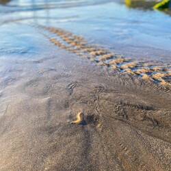 Wir haben in diesem Urlaub gelernt, dass die Gezeiten sich täglich verschieben. Der Gezeitenzyklus, also einmal Ebbe und Flut, dauert ca 12 Stunden und 25 Minuten. Es gibt also zwei mal am Tag High Tide und zwei mal Low Tide, die sich immer weiter verschieben. Deshalb muss man jeden Tag neu in den Gezeitenkalender oder auf die Tafeln am Strand schauen, damit man nicht in Schwierigkeiten kommt. Wieder was gelernt 🙃