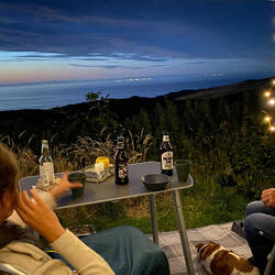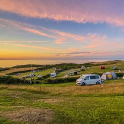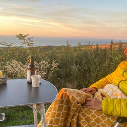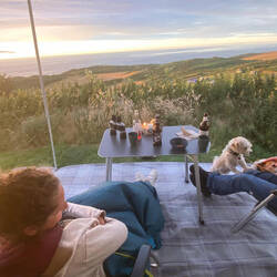 Nach einer Nacht auf dem Surfer-Campingplatz ist hier auf der North Morte Farm Alternativprogramm angesagt. Riesige Flächen, fast zu große Auswahl an wunderschönen Ecken, ein genialer Ausblick über die Hügelspitze Lundy Lighthouse und ganz viel Grün und freier Raum. Es gibt zwar kaum einen geraden Platz, das ist bei der Aussicht aber schnell vergessen. Nur das Glas auf dem Tisch muss man halt festhalten :)