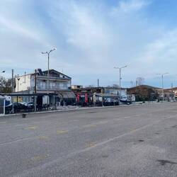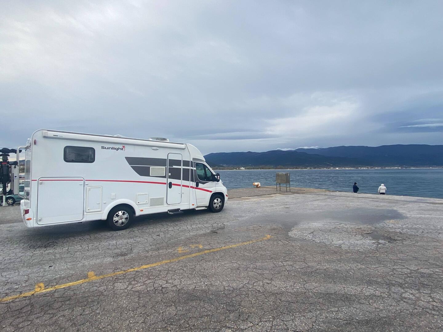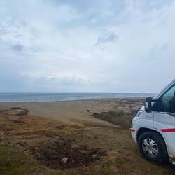Eine Nacht in Stavros auf einem großen Parkplatz am Meer übernachtet.
