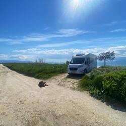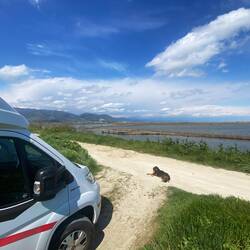 Gestern bekamen wir ja Besuch von 2 streunenden aber lieben Hunden, die nicht leer ausgingen und die immer in der Nähe unseres Womo‘s blieben.