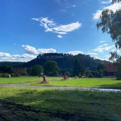 Gestern 22.07 nach unsrer Zick-Zack Fahrt haben wir einen tollen Übernachtungsplatz auf einem Bauernhof gegenüber der Festung Königstein gefunden und eine total ruhige Nacht verbracht.