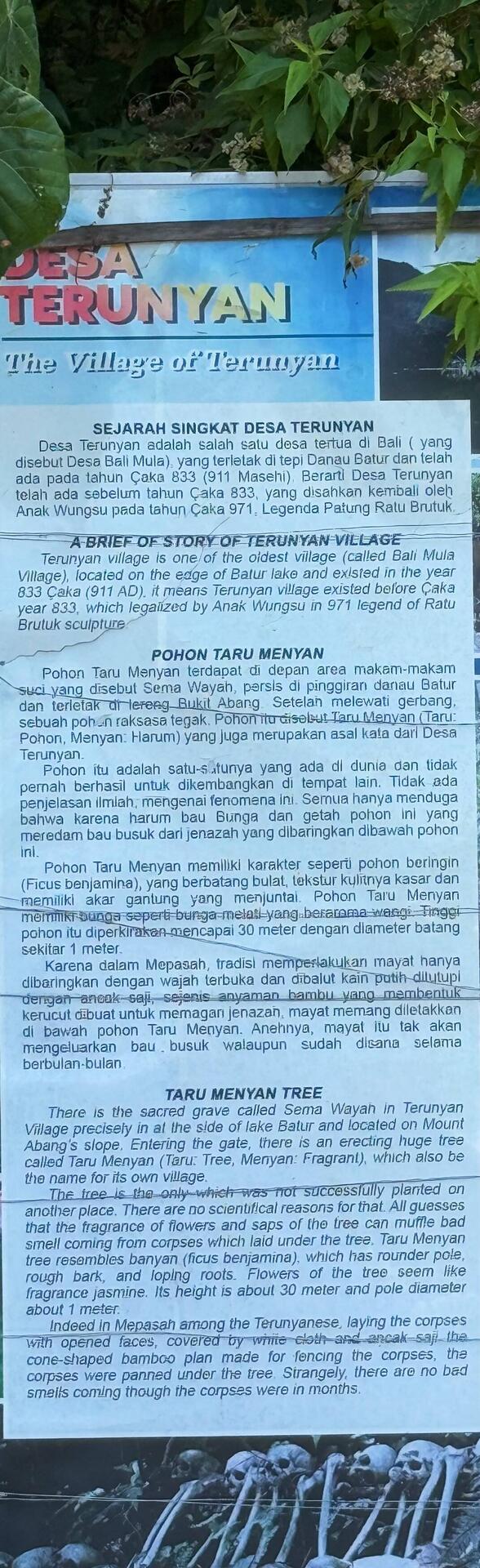 Today we'll drive to the Mount Batur area. We'll travel to the village of Trunyan, crossing Lake Batur by motorboat to get there. Trunyan is home to the Bali Aga ethnic group, known for theirRead more