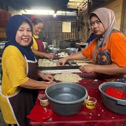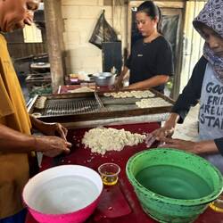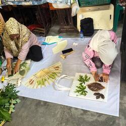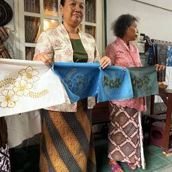 Our small group will reconvene and drive to the Sekar Rinonce Batik Foundation. The foundation was established to help preserve the traditional "hand-waxed" Batik craft, which is under serious threatLue lisää