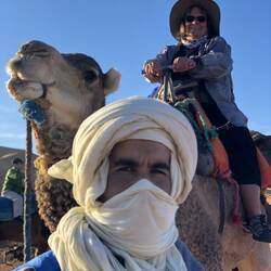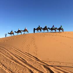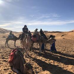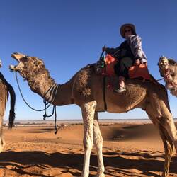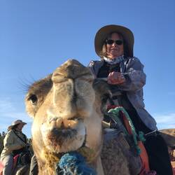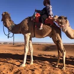Today we’ll “saddle up” to explore the desert dunes the traditional way on the back of a camel.