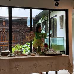 kitchen for a lesson in Indonesian cooking,
