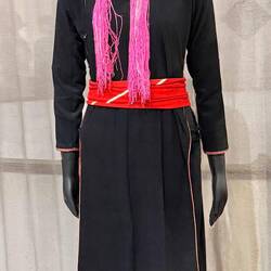 Handmade Cotton, Indigo, Wool. Blue & Red Applique Inside the Bottom of the Gown Indicates a Desire to have Children. Costume, 1980