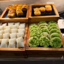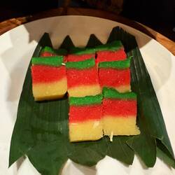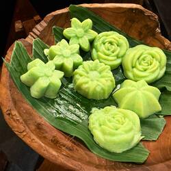 Klepon, also known as Onde-onde or Buah Melaka, is a traditional Southeast Asian confection made from glutinous rice flour filled with palm sugar and coated in grated coconut.