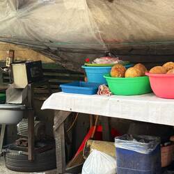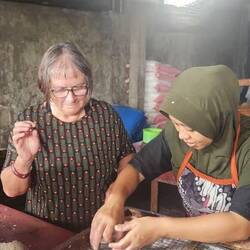 kitchen for a lesson in Indonesian cooking,