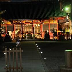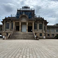 Tsukiji Hongwanji is a Buddhist temple belonging to the Jodo Shinshu Hongwanji-ha denomination, also known as Shin Buddhism, which was founded by the monk Shinran (1173-1263) and whose head temple is Hongwanji (Nishi Hongwanji) in Kyoto. The temple was first built near Asakusa, but was burnt down in a fire in 1657 and rebuilt at its current location in 1679. At that time, the area where the temple stands now was the sea. Temple followers and others implemented a land reclamation project and rebuilt the temple on the new land. In 1923, the temple was again destroyed by fire caused by the Great Kanto earthquake, and, in 1934, the current Hondo (main worship hall) was rebuilt according to a design by renowned architect Ito Chuta. In 2014, the temple’s main worship hall, gate posts (Main gate, North gate, and South gate), and stone walls were designated as National Important Cultural Properties. “Tsukiji” means “reclaimed land” and signifies the origins of the site on which the temple stands.Meer informatie
