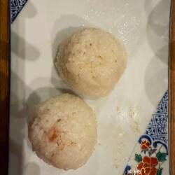 lunch of rice balls and miso soup, served with
