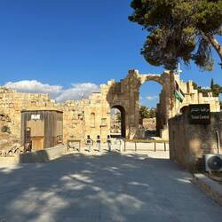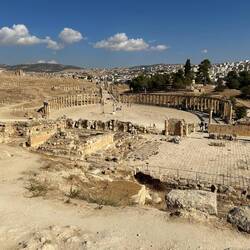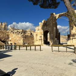 Jerash is a city in Jordan, north of the capital Amman. Inhabited since the Bronze Age, it’s known for the ruins of the walled Greco-Roman settlement of Gerasa just outside the modern city. These include the 2nd-century Hadrian’s Arch, the Corinthian columns of the Temple of Artemis and the huge Forum’s oval colonnade. The Jerash Archaeological Museum displays artifacts excavated from the site.