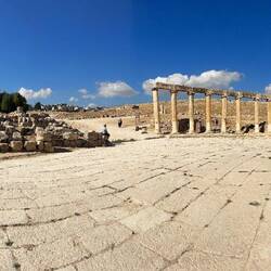 We'll drive to Jerash, considered the world’s best-preserved and most complete Greco-Roman city, first established as a town in AD 70. Today, it’s a sprawling open-air museum of monumental temples, baths, theaters, and lovely Byzantine churches. We’ll be greeted by the triple-arched gateway built to honor the arrival of the Emperor Hadrian in AD 129. Next to Hadrian’s Arch stands the massive hippodrome, partially reconstructed. We’ll wander through this amazing site and marvel at the Zeus Temple, Oval Plaza, and splendid avenues and plazas lined with graceful colonnades. After our tour, we’ll have free time to explore Jerash on our own, a time when you can visit the site’s museum, or perhaps attend the gladiator show and chariot race that takes place here (when available).