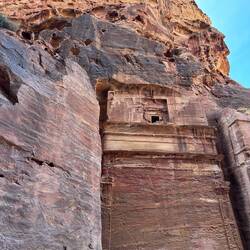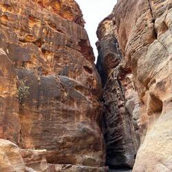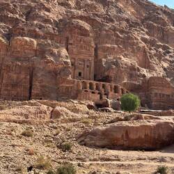 Situated between the Red Sea and the Dead Sea and inhabited since prehistoric times, the rock-cut capital city of the Nabateans, became during Hellenistic and Roman times a major caravan centre for the incense of Arabia, the silks of China and the spices of India, a crossroads between Arabia, Egypt and Syria-Phoenicia. Petra is half-built, half-carved into the rock, and is surrounded by mountains riddled with passages and gorges. An ingenious water management system allowed extensive settlement of an essentially arid area during the Nabataean, Roman and Byzantine periods. It is one of the world's richest and largest archaeological sites set in a dominating red sandstone landscape.