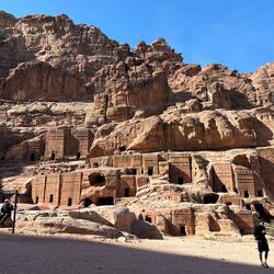 Set off for a full-day walking excursion through one of the most beautiful of all ancient ruins—the fabled city of Petra. Reached through a towering narrow canyon, the city is carved into the solid red sandstone cliffs, and features soaring temples, a 3,000-seat amphitheater, houses, banquet halls, churches, and tombs. It is said that Petra’s massive Treasury, with its portico and pillars, was the storeroom for the Queen of Sheba’s gifts to Solomon.