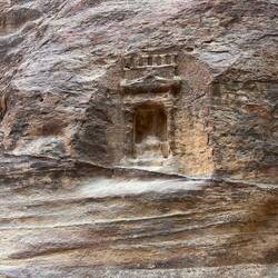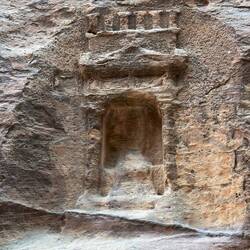 The serried rows of numerous rock-cut tombs reflecting architectural influences from the Assyrians through to monumental Hellenistic; the sacrificial and other religious high places including on Jebels Madbah, M'eisrah, Khubtha, Habis and Al Madras; the remains of the extensive water engineering system, city walls and freestanding temples; garden terraces; funerary stelae and inscriptions together with the outlying caravan staging posts on the approaches from the north (Barid or Little Petra) and south (Sabra) also containing tombs, temples, water cisterns and reservoirs are an outstanding testament to the now lost Nabataean civilization of the fourth century BC to the first century AD.