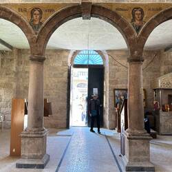 Madaba, where we’ll take a short walk to St. George’s Church.