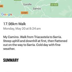 Quite hilly today, my feet were complaining about it. Downhill going in to Sarria.