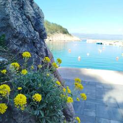 Jetzt sind wir kurz vor Dubrovnik auf einem herrlichen Campingplatz mit tollem Blick aufs Meer.