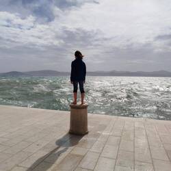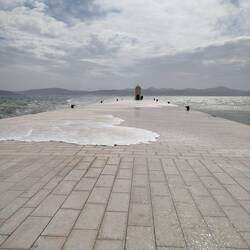 Bei Regen ging es entlang der Küste nach Zadar. Auch bei diesem Wetter beeindruckend. In Zadar viel Wind aber Sonne. Spaß mit Wellen am Pier 😁