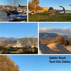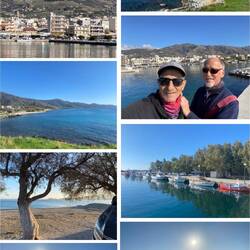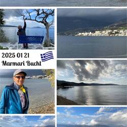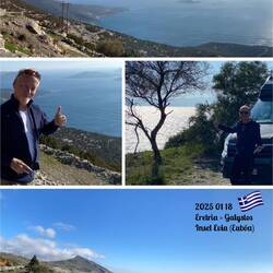 24.1. unsere Ziel ist heute der Kymi Beach an der Ostküste, ein kleinerer Ort mit Fährhafen. Zweimal täglich setzt die Fähre zur nördlich gelegenen Insel Skiathos über. Dann ist hier echt was los. Wir erkunden erst die eine Seite, wo ein total verrosteter Hafenkrahn mit abgebrochenem Förderband am Pier steht: passt zu den verrotteten Schiffswracks am Trockenhafen. An der anderen Seite des Hafen führt erst eine Teerstraße entlang der Bucht, die dann so allmählich zur Schotterstraße wird und viele Hundert Meter im Meer endet. Trotzdem ein schöner Spaziergang am aktuell ruhigen Meerufer entlang. Auf dem Rückweg kehren wir im Coffee-Pub ein, trinken lecker heiße Schokolade mit Rum und ein Glas Rotwein, die Musik ist Klasse!