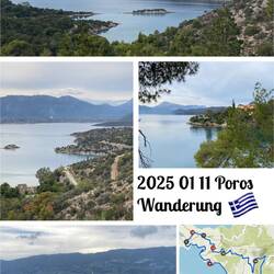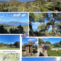 11.1. Wir sind seit gestern wieder im Wandermodus, daher brechen wir heute Morgen zur zweiten Wandertour zum Sanchuary of Poseidon auf der Insel Poros auf. Kaum Wolken am Himmel, angenehme Temperaturen, also ideales Wanderwetter. Die Tour ist gut beschrieben und auch entsprechende Wegweiser geleiten uns hoch, mal durch Bachbeete, schmale Wald- und Wiesenwege hoch zur ersten Kapelle „Agios Efstathios“, dann weiter durch eine fruchtbare Hochebene bis zum angepeilten „Sanchuary of Poseidon“, einer weiteren Ausgrabungsstätte mit freiem Zugang aufs Gelände. Wir sind einmal mehr die einzigen Besucher. Aber außer ein paar Steinen gab es auch nicht viel zu entdecken. Was nix kostet, ist nix wert, haben wir jetzt gelernt!